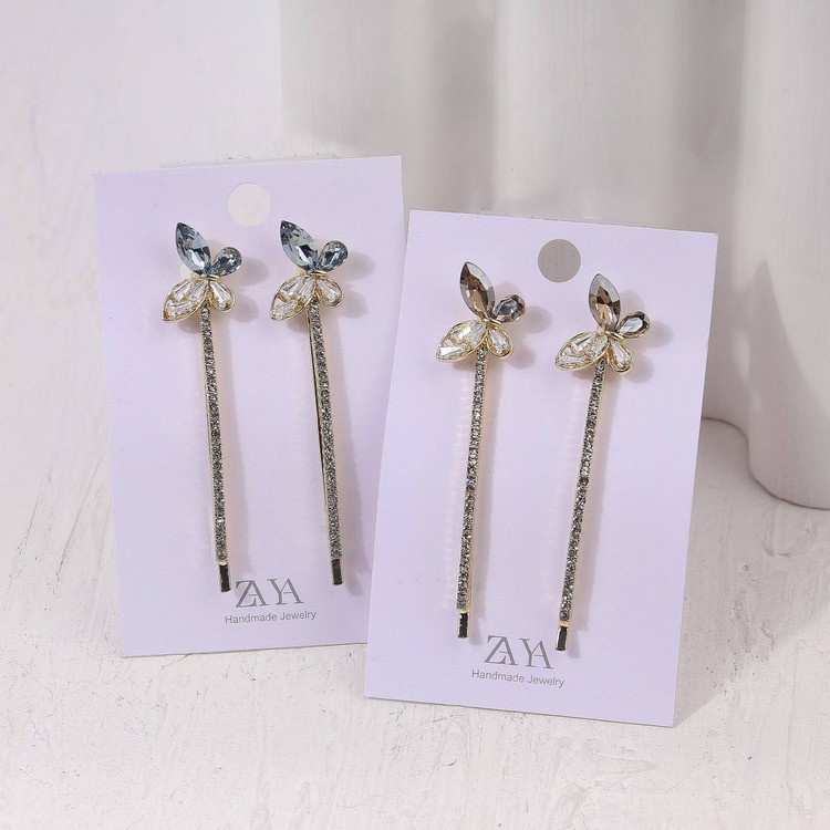 یک جفت گیره موی فوقالعاده شیک برند زایا با طراحی جواهرگونه، نگین بدون ریزش و آبکاری با کیفیت بالا.
