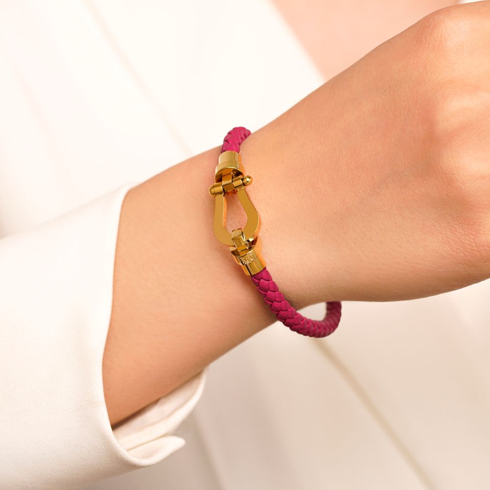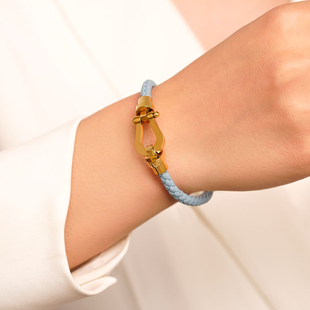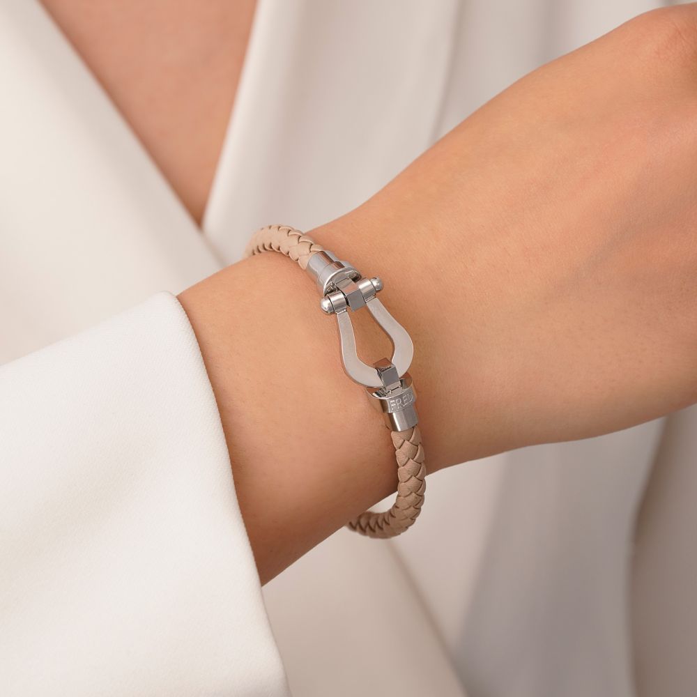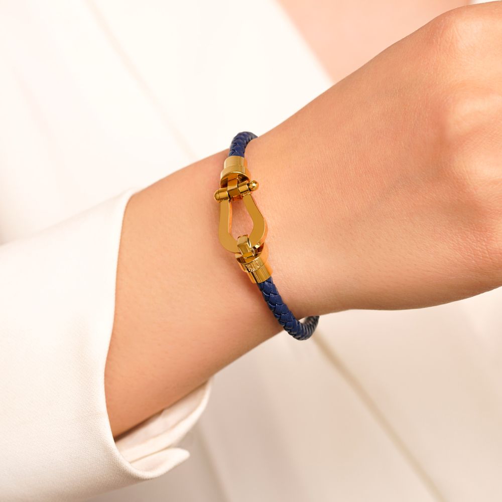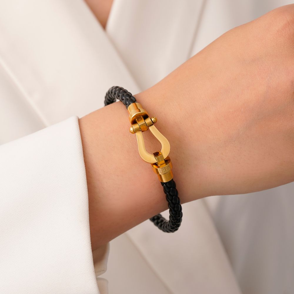 دستبند استیل304 فرد چرم قفل طلایی