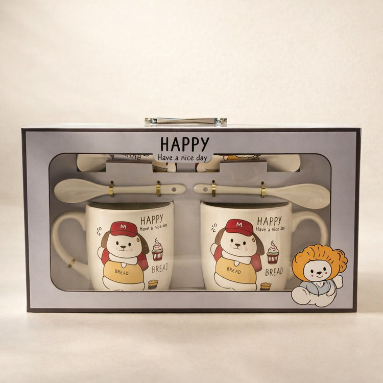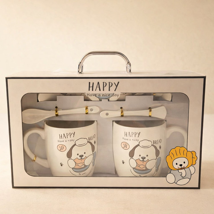 هدیه خاص از بسته بندی و ظاهرش مشخص میشه ؛توی این پک جذاب دو تا ماگ به همراه قاشق و درب سرامیکی واسه کادو دادن اماده ست