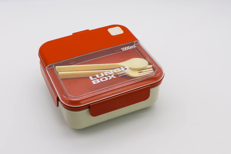 یه ظرف غذای دو قسمتی با بخش مجزا برای قاشق و چنگالش که از جنس پلاستیک گرید غذایی و بدون مواد مضرBPAهست